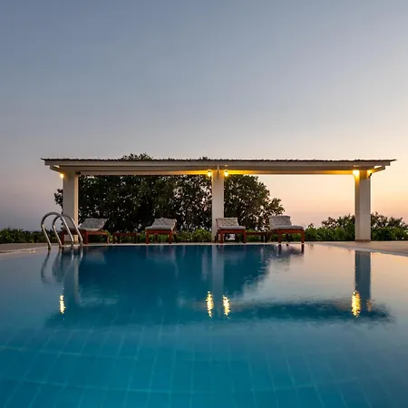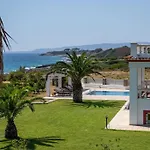 Guests can enjoy a seaside mountain view from a terrace at the beachfront Villa Vinaria Litoa Waterfront Minia, 6 km from the Makris Gialos Beach.